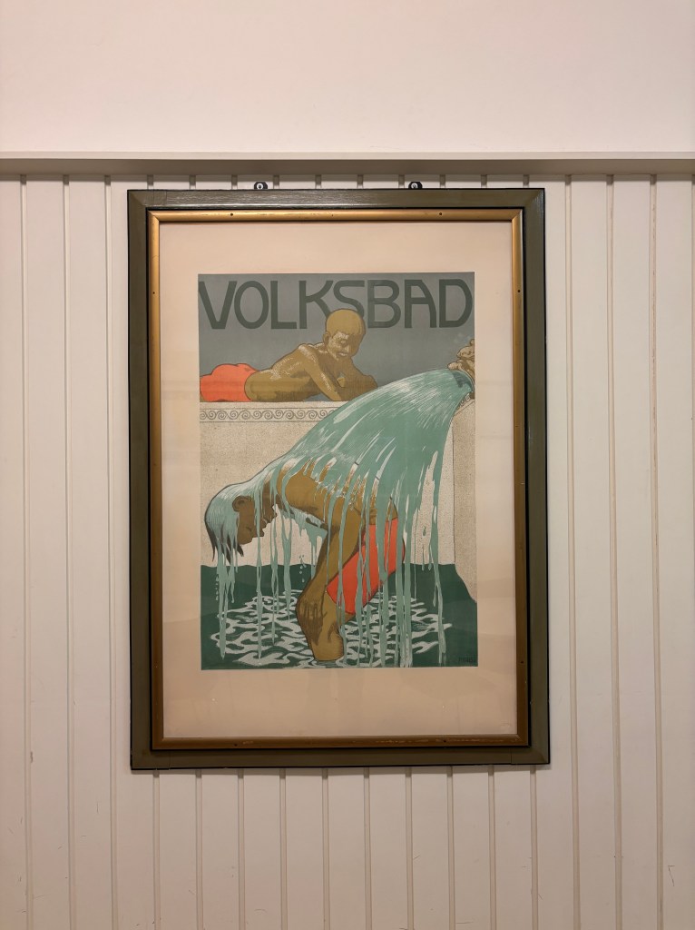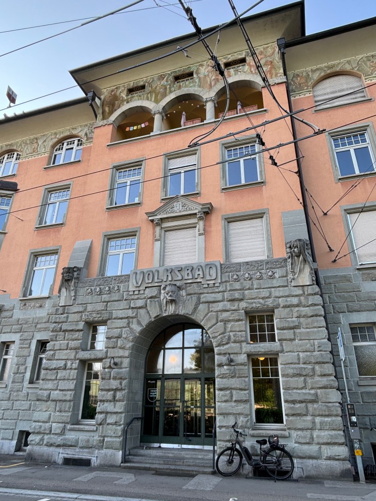 In the morning, I set off early for a morning swim. Open to the public, Volksbad is the oldest indoor pool in Switzerland, built in 1906. Before houses had their own bathrooms (meaning a literal bathing room), Volksbad was commissioned inside a stately townhouse in the style of a Roman bath. There was nothing remotely stately about the 20 or so of us flailing around in the fairly small pool (someone even brought flippers and a snorkel) but I really enjoyed the experience, reminiscent of of a Russian banya – statues and all.