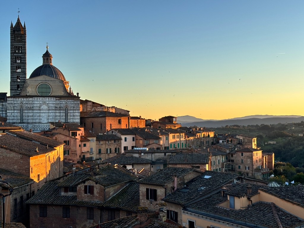 In the heart of the town lies the Piazza del Campo. A clamshell shape in form, this medieval square is uniquely divided into nine wedges, representing the “Council of Nine” who governed during the Medieval Ages. It was gorgeous to watch the late afternoon sun move across the square, the site of the bi-annual palio horserace. Sunset in Siena was special, and I was treated to a gorgeous show both nights from the balcony of my pensione.